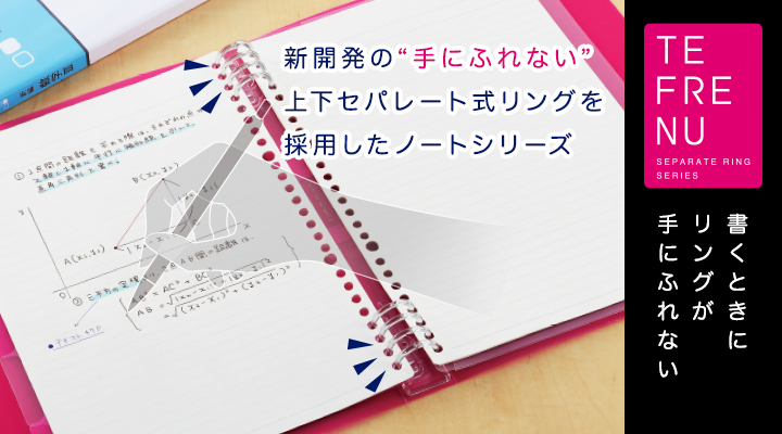 たまたま新聞の商品記事で見つけた、KING JIMのバインダーノート「テフレーヌ」。バインダーノートは、自由に紙数を増減できるので便利な半面、その金属リングが邪魔で、閉じたまま書こうとすると、特に左ページへの書込が邪魔になります。それを、真ん中のリング部分を抜いてしまうと言うコロンブスの卵的発想で解決した商品。実物にはまだ触れませんが(2月発売予定)、イメージするだけでも便利さを感じられる商品。最近個人的に嵌まっている「引き算の美学」を具現化したような商品ですね。今のバインダーノート製品との互換性を維持するために、オプションで真ん中部分にリングをはめられるような器具なんかもあると良いかも。上下のリング部分を利用して固定するような感じで、全体のリング穴を使えるようなオプション。